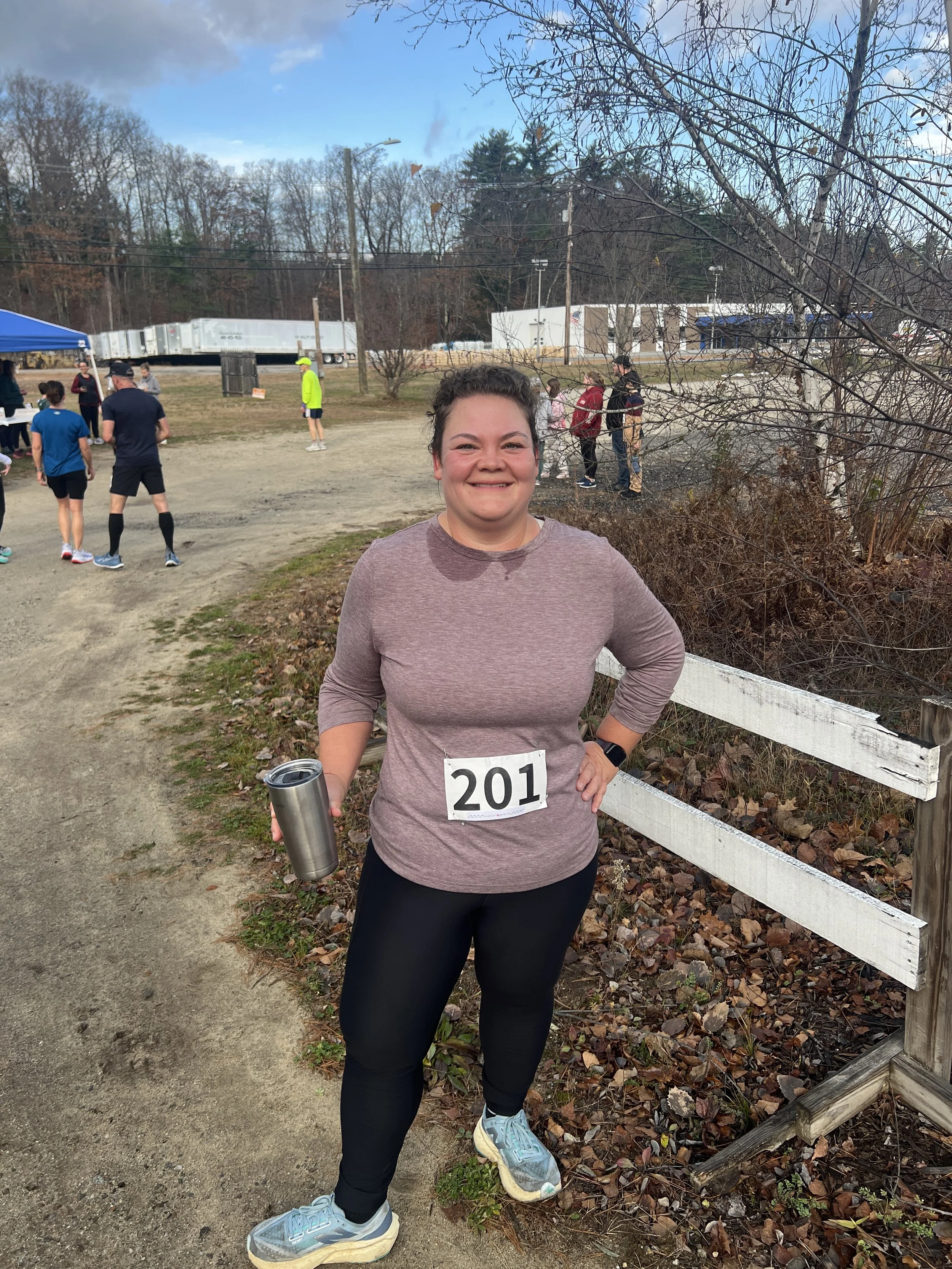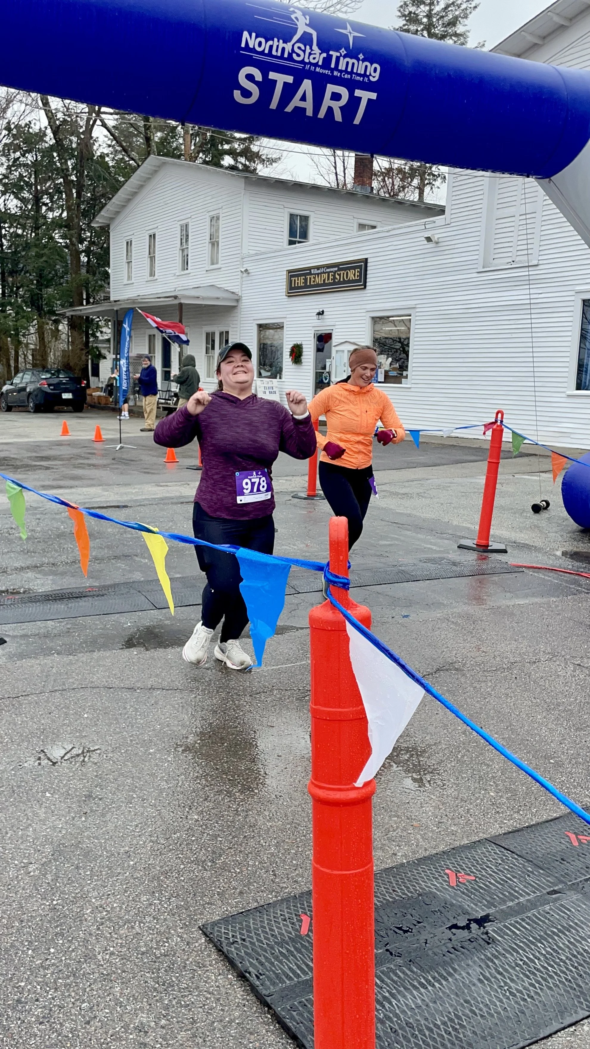 January: Peanut Butter Chip Race Temple, NH. At age 42 I signed up for my first ever race. The race took place on New Years Day, I was so nervous. It was a 5k loop around the roads of Temple, which had a couple good hills. I had to do some walking throughout the course. Thanks to a friend who ran with me and a cheering section at the end, I was able to complete my first race.