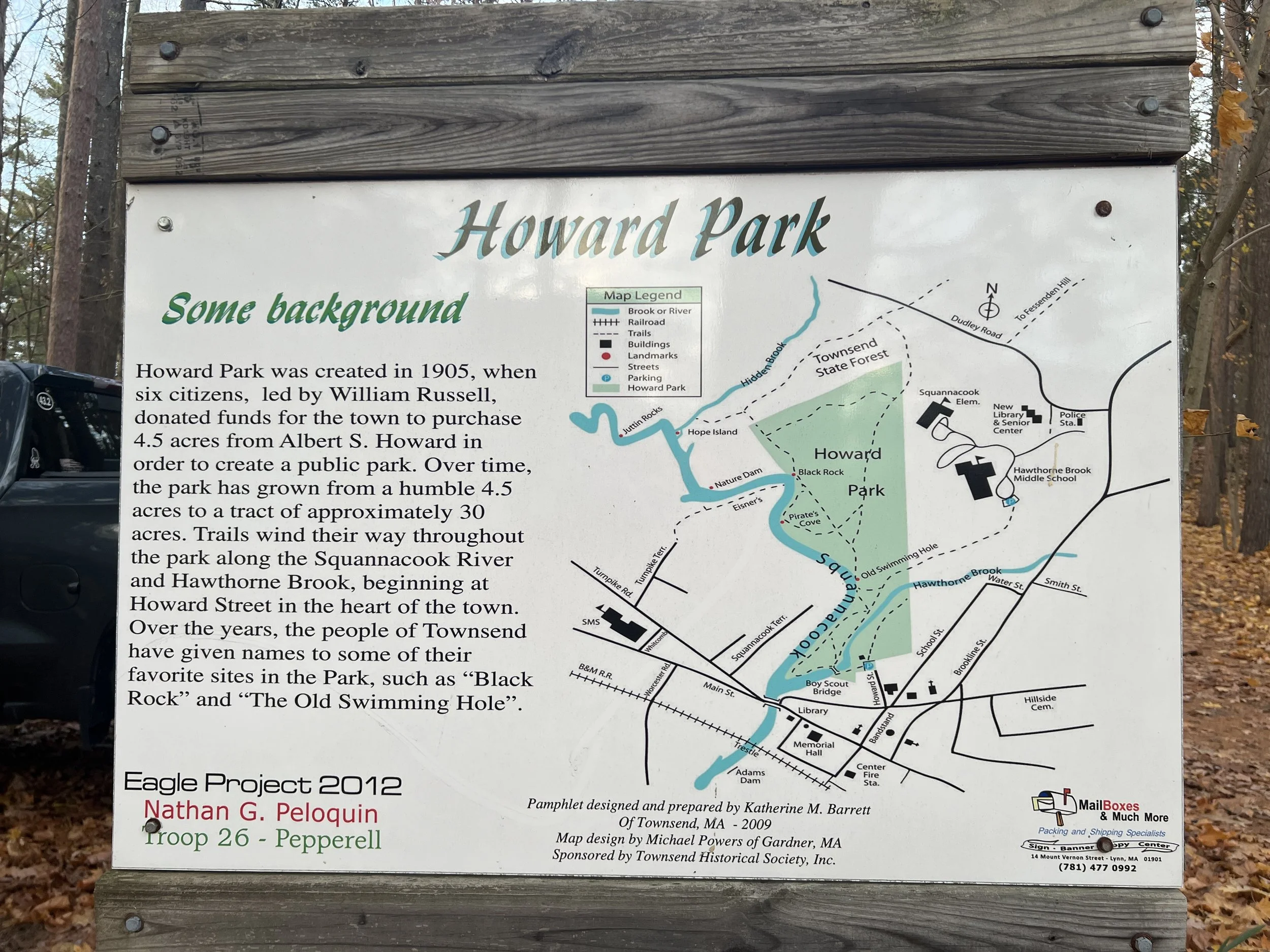 Located in Townsend, Massachusetts is Howard Park, which has fairly flat walking trails throughout the woods and along with Squannacook River.