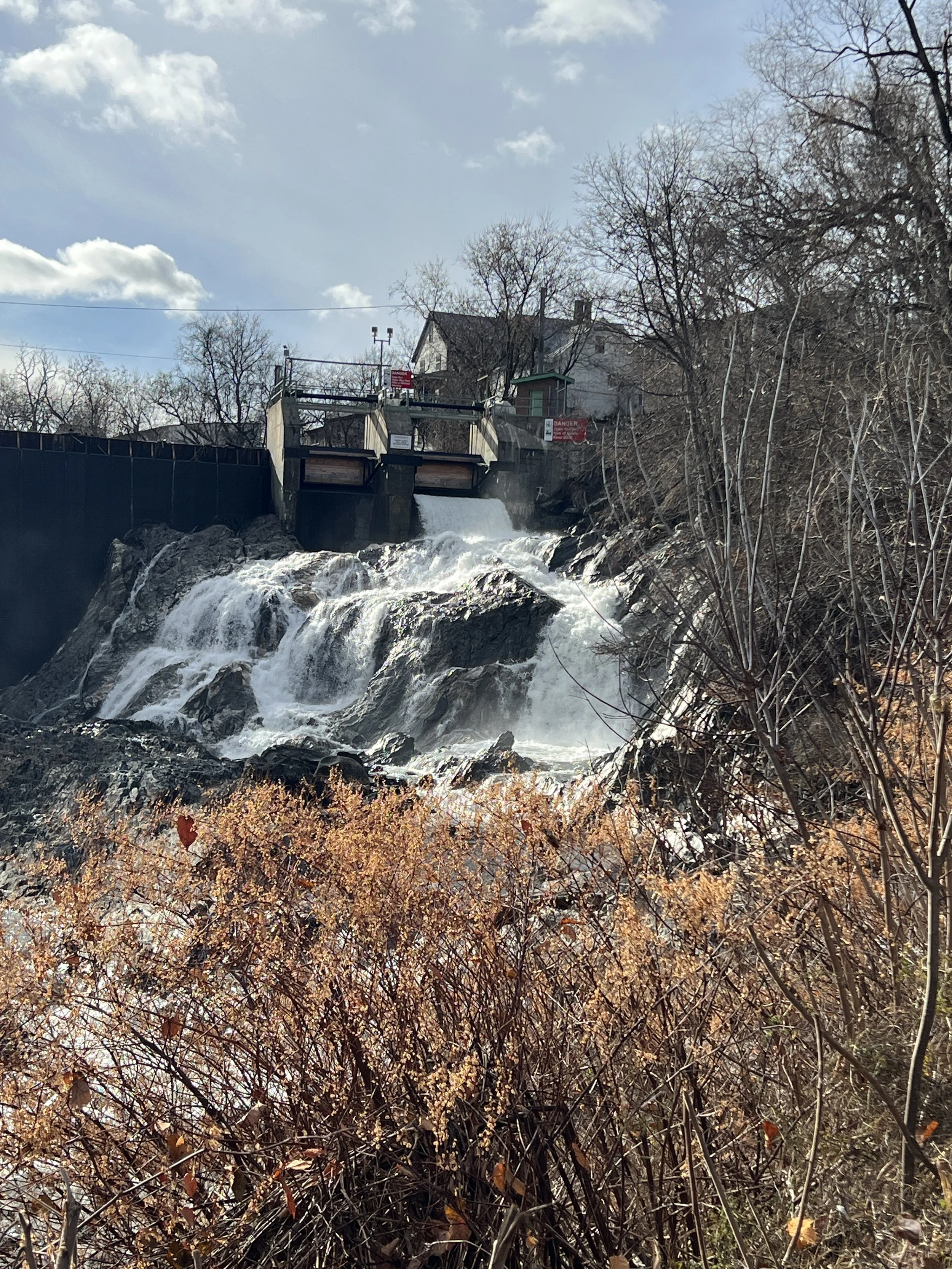 There is a small parking lot with access to a park and some picnic tables. You can also view this waterfall from the road as you are driving by if you do not want to stop. Depending on time of year and what they are doing with the dam we saw the falls flowing pretty well one day, then the next day not a lot of water going over the falls. There is no guarantee that the falls will be flowing when you visit.