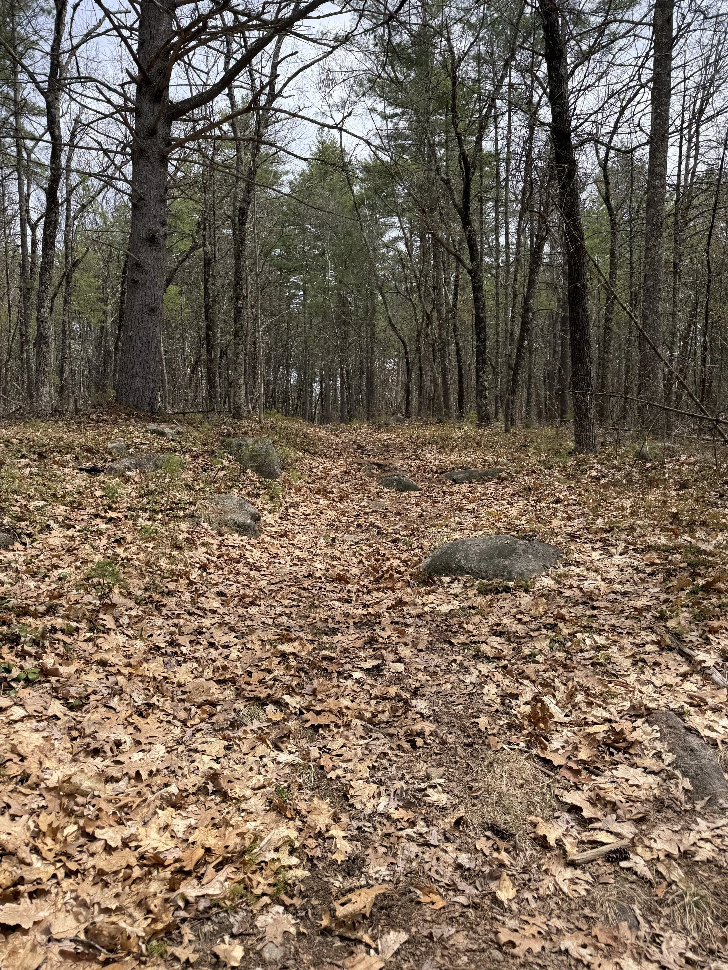 Located in Townsend State Forest in Townsend, Massachusetts is King’s Cross Outlook. A rocky ledge outcropping with a tall cross. I have tried to find this cross a few times, but have not been successful. You can see the cross when you are driving on Mason Road in Townsend towards the New Hampshire border. I keep telling myself I need to find it. After some research I finally found it. We parked on Old Turnpike Road in Townsend across from Bridal Path Road. There is a small parking area for 2-3 cars. Make sure you do not block the gate.