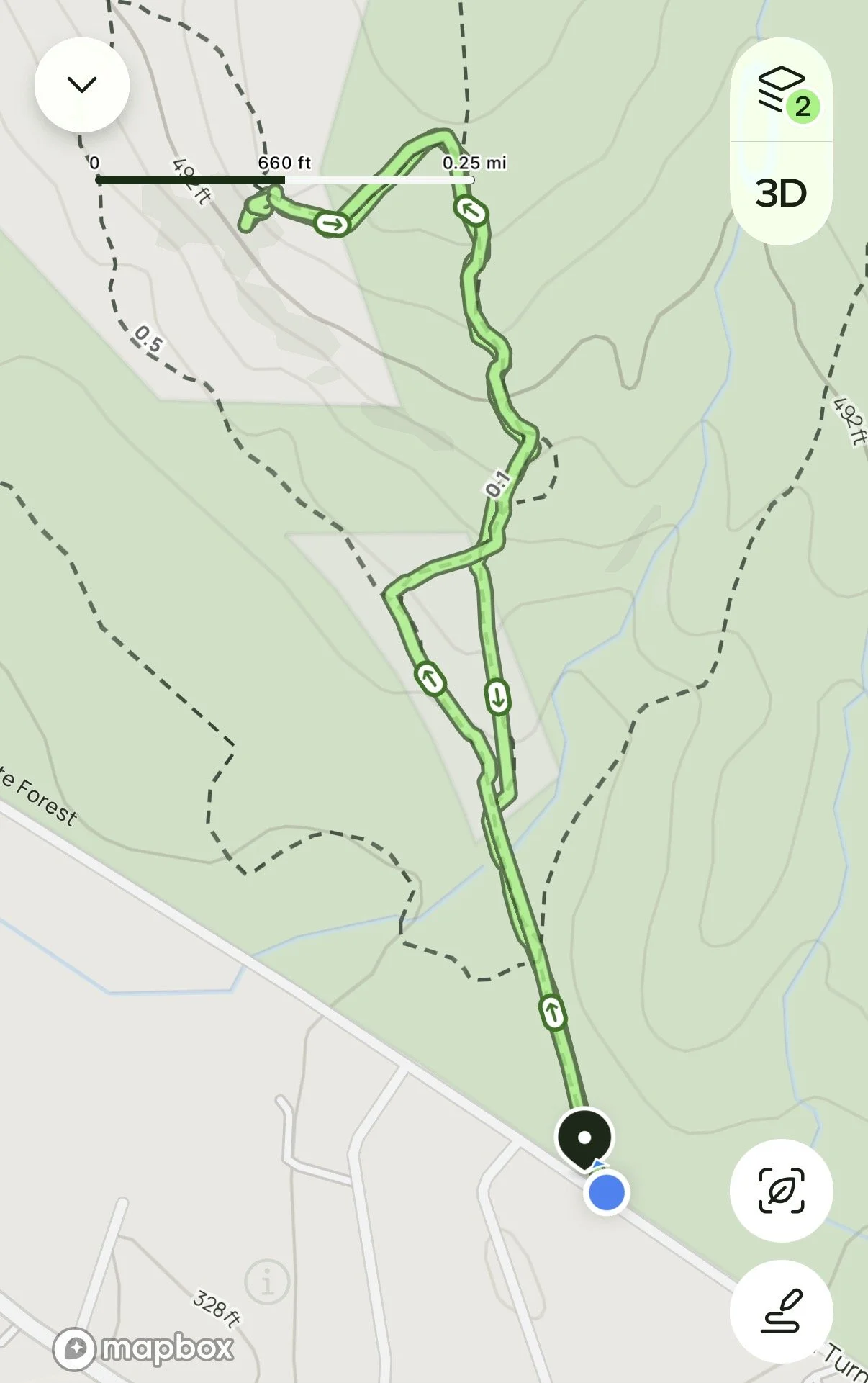 I did follow All Trails App and Google Maps to ensure I was going the right way. As there are several trails throughout Townsend State Forest. Below is my All Trails route.